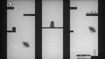 Push boxes. Cross crumbling paths. But above all: plan ahead. Your every action must carry your two selves through this reality. One input. Two fates.